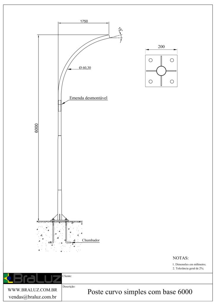 Poste Curvo Simples Chumbador